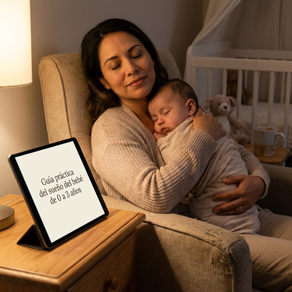 Guía práctica del sueño del bebé (0 a 3 años) con ventanas de sueño, rutinas y estrategias para reducir despertares nocturnos. Incluye planificador imprimible.